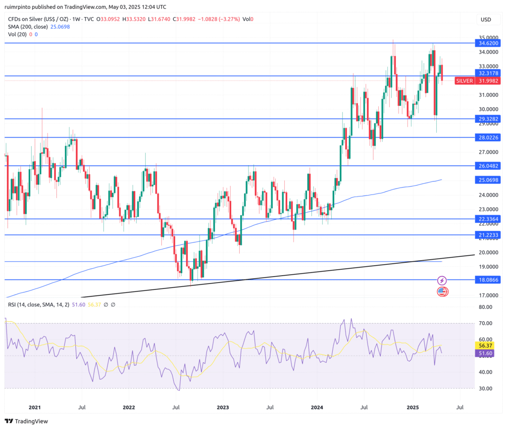 Precious metals corrected this week, with gold and silver dropping by 2.4% and 3.3%, respectively. In the near future gold may retrace back to ~3150$, at the top-end of the previous trend. Silver closed at ~32$/oz, and continues on a lateral trend – it seems stuck in the range 29-34$/oz.