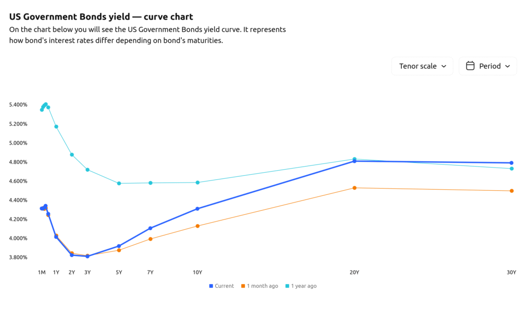 US bond yields rose slightly this week. Yields now sit at 3.822% for the 2-year and 4.308% for the 10-year.