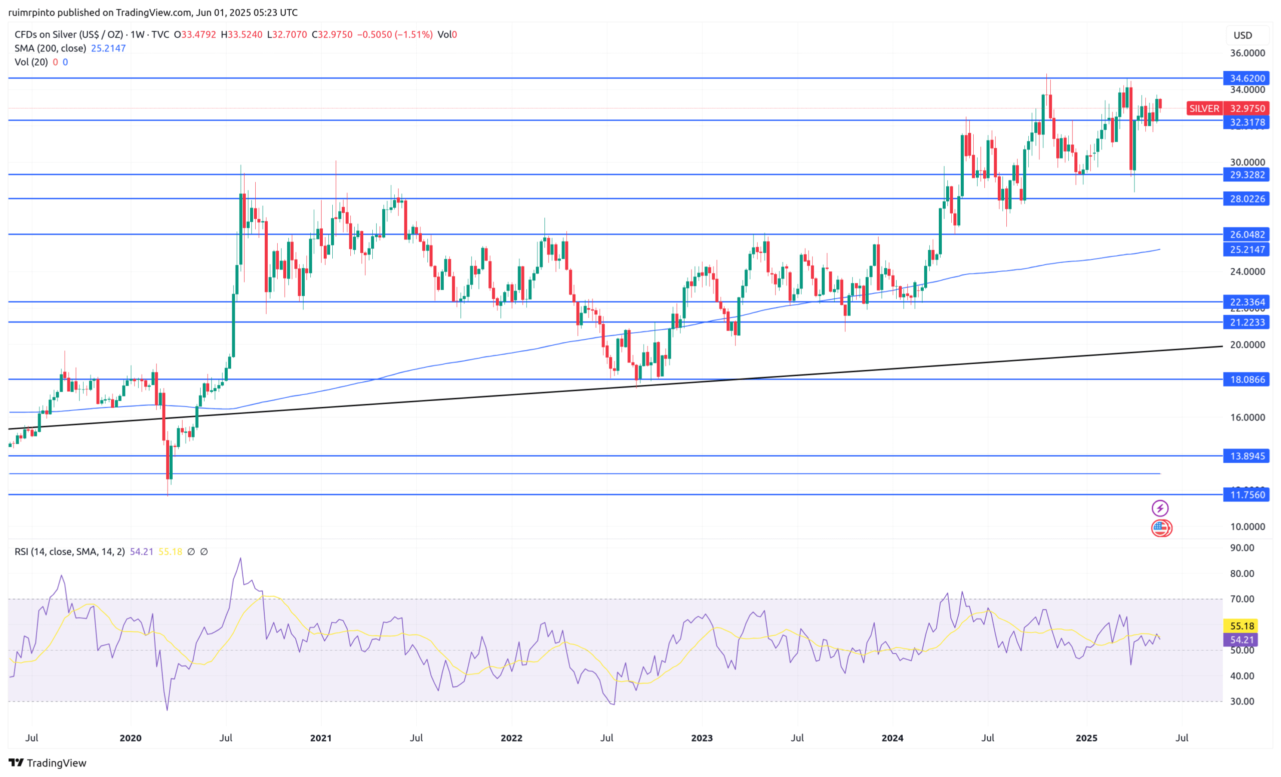 Precious metals held this week. Gold and silver were down by 2.1% and 1.5%, respectively. Gold lost its upward momentum and is either consolidating or getting ready to correct – if a correction occurs, the first target should be around 3000$/oz. Silver closed at ~33$/oz, and continues on a lateral trend – it will likely trade in the range 29-35$/oz in the near future.